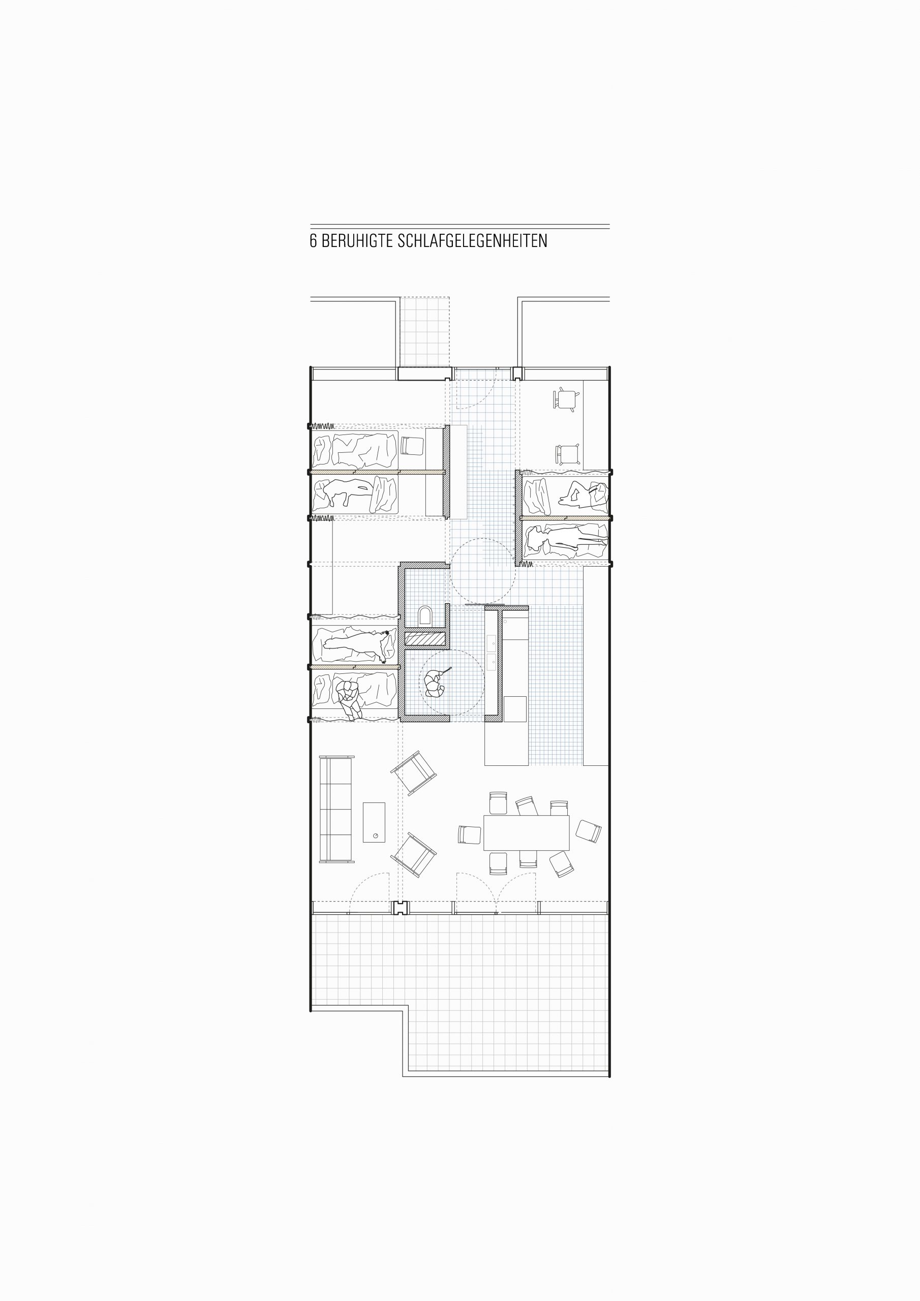 Within the apartments, we would like to create conditions that guarantee a basic living quality, regardless of whether one lives alone or in groups of six in the same area. What is „luxury“ for one person becomes affordable living space for another. This enables the most diverse constellations of residents from the most diverse backgrounds to live together under one roof. This can lead to a social mix, which is more important today than ever and stimulates our empathy (utopia?).