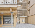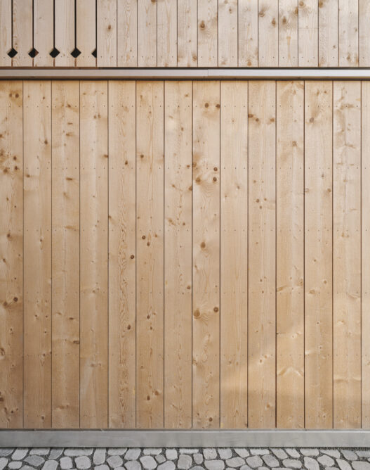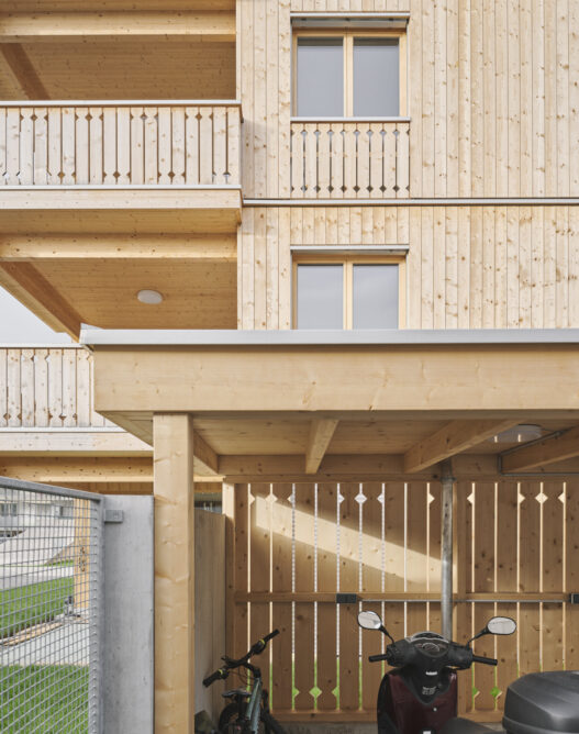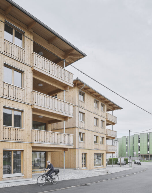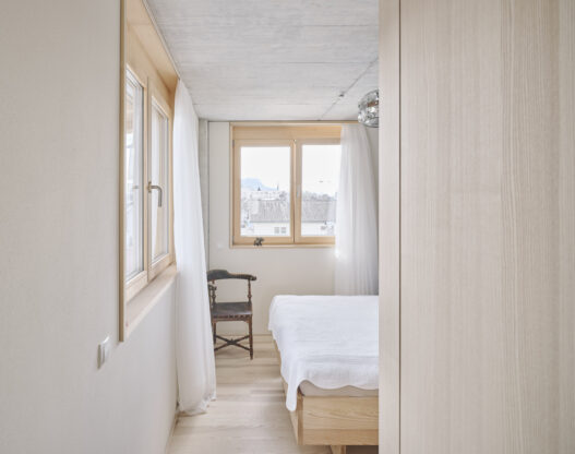 In order to blend in appropriately with the cityscape in terms of its proportions and size, the building was designed as two separate, interlocking structures. The cubature of the houses corresponds to that of centrally located Dornbirn townhouses from the early 20th century. The theme of the spacious corner wooden verandas also borrows from this type of building.