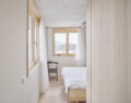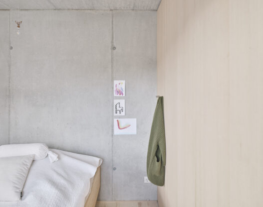 The construction method is also clearly noticeable inside the apartments. The load-bearing concrete pillars and ceilings were left exposed and make the structure of the building legible.