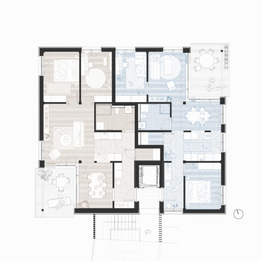 Innerhalb der Wohnungen wurde ein besonderes Augenmerk darauf gelegt, eine Gleichwertigkeit zu schaffen und jeder Einheit – ihrer Größe entsprechend – ein gleiches Maß an Qualitäten zu geben.