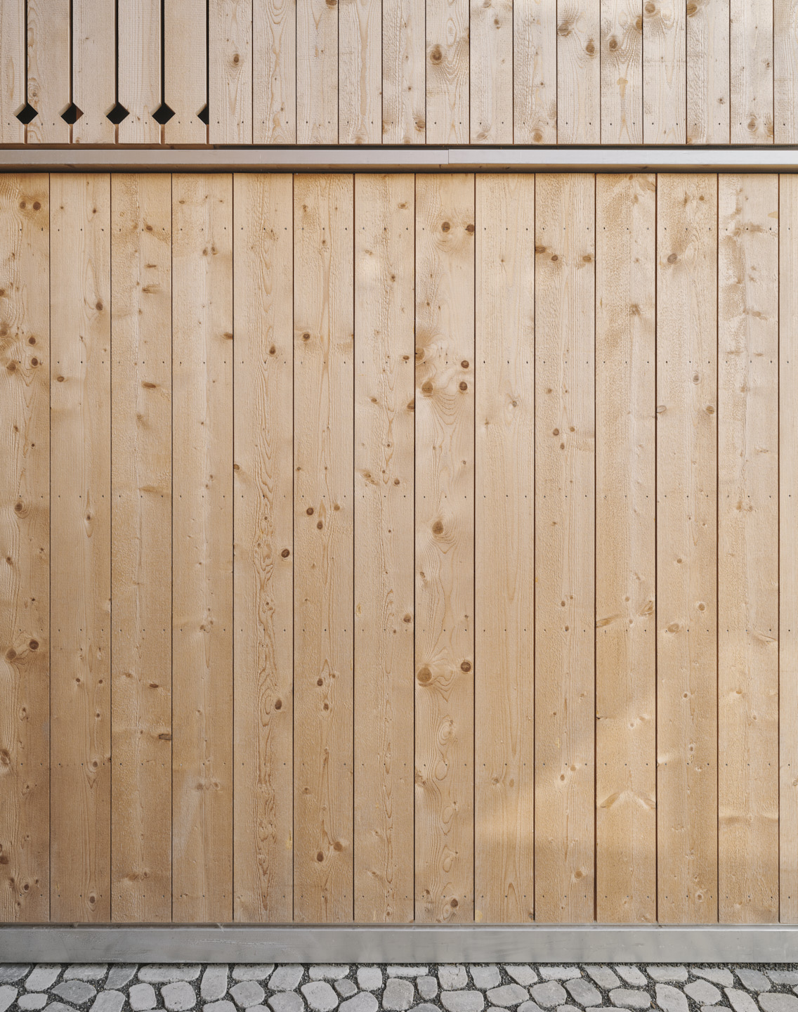 The building was constructed using a hybrid construction method. A reinforced concrete skeleton forms the basic structure and was filled with timber frame elements. The shell of the building is a rear-ventilated façade made of untreated spruce wood cladding.